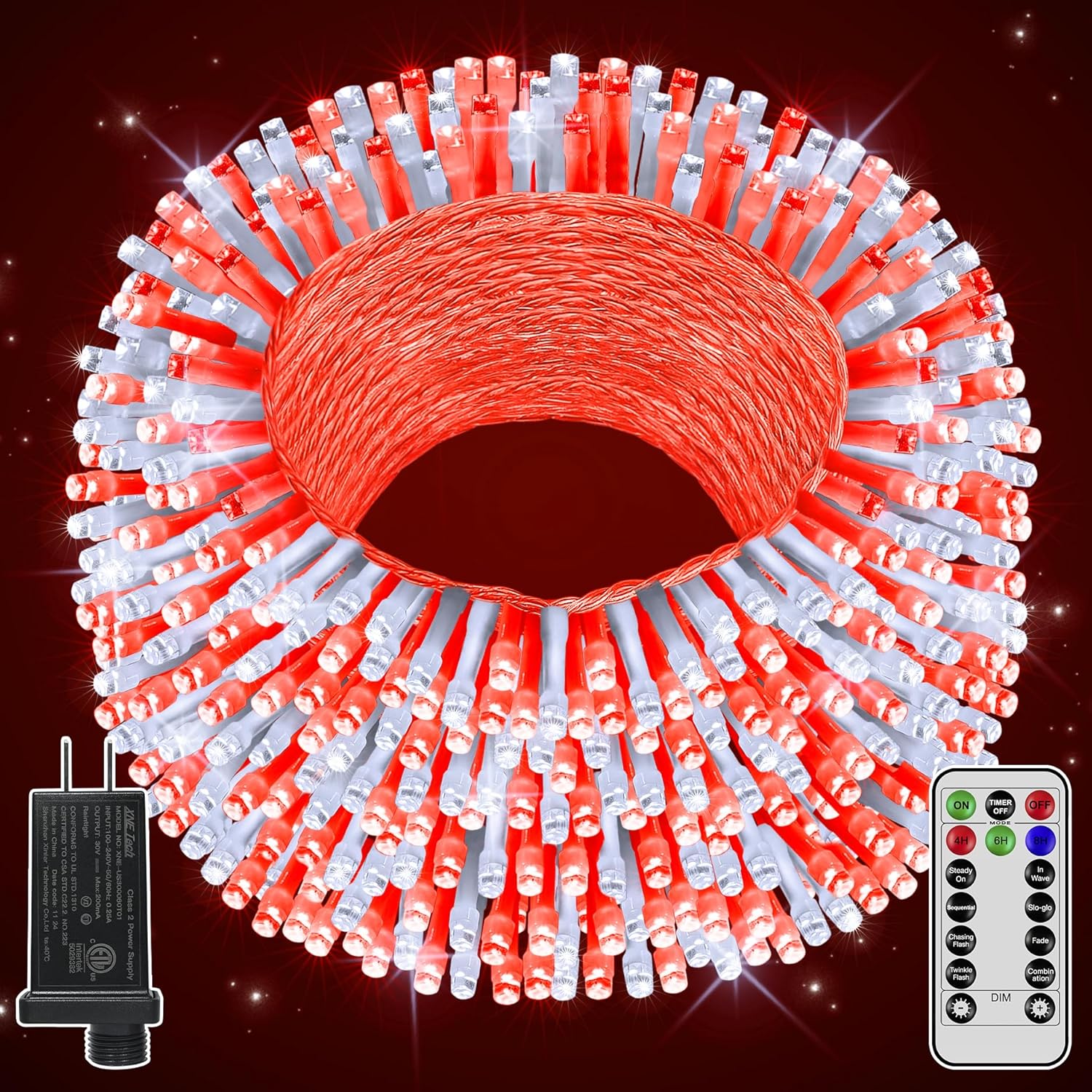 196FT 600LED Christmas Lights Outdoor Waterproof, String Light with Remote, 8 Modes LED Lights Plug in Twinkle Fairy Light for Party Holiday Decor (Red+White)