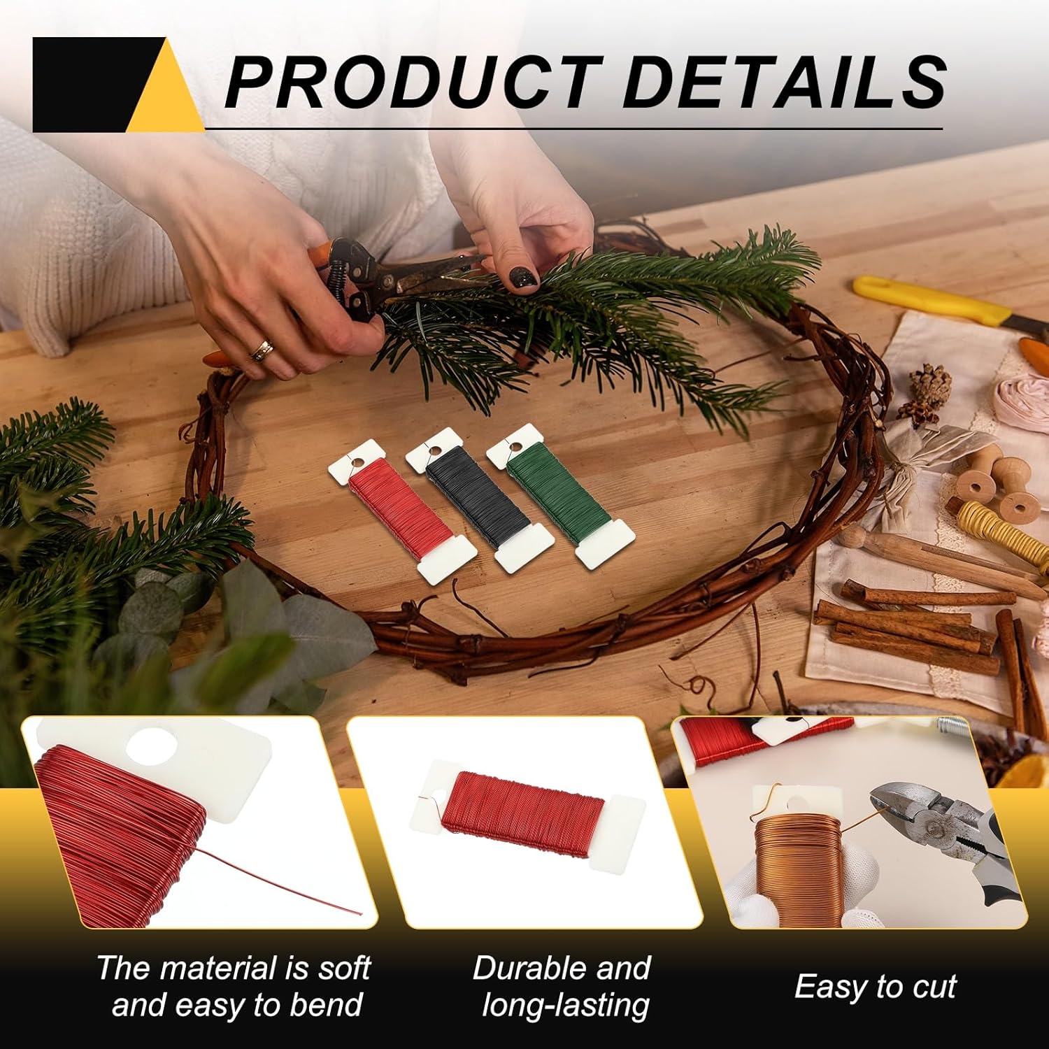 - This floral wire is suitable for various holiday decorations, such as making Christmas wreaths, hanging Christmas ornaments, and tying bouquets to help you secure the position of fresh flowers and prevent them from scattering. It can also be used to create exquisite potted plant art, bows, crafts, and more.