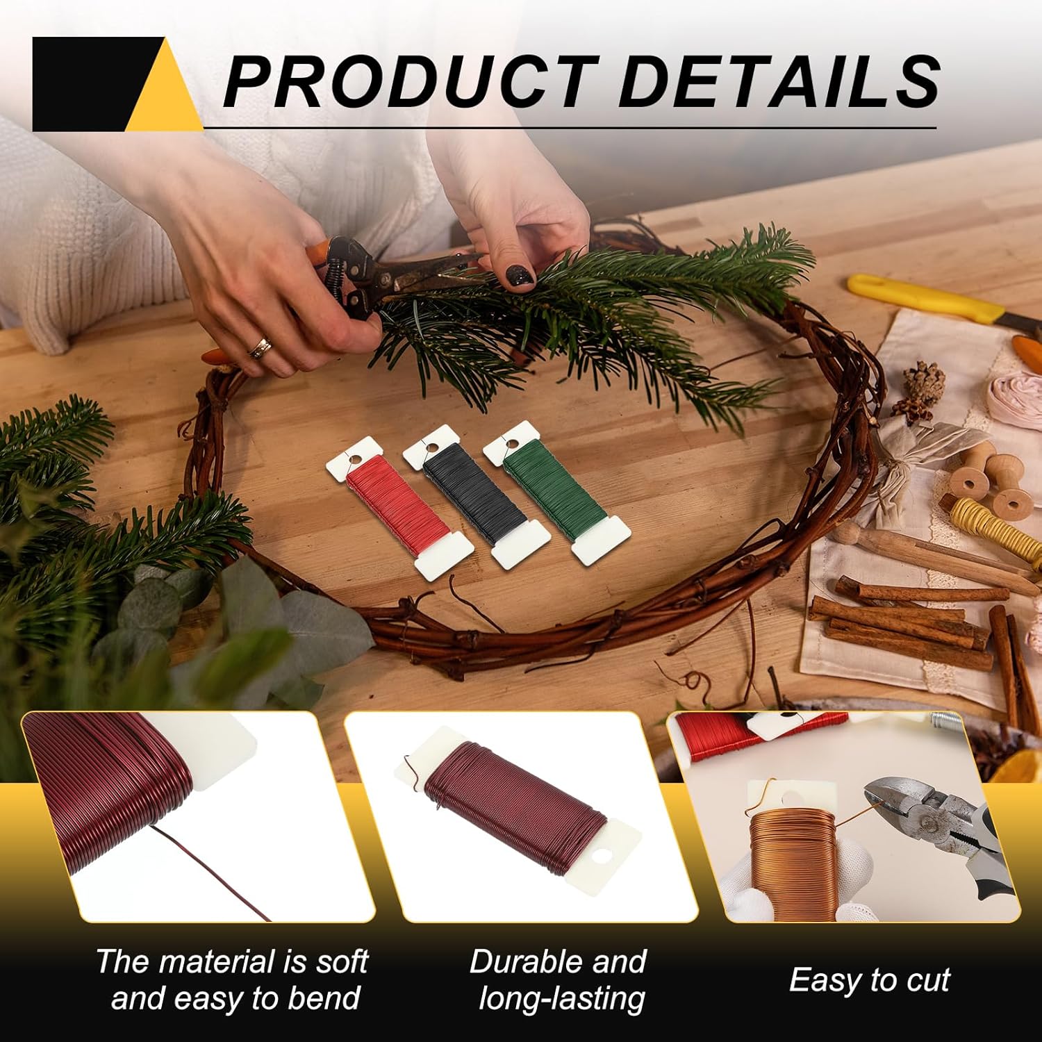 - This floral wire is suitable for various holiday decorations, such as making Christmas wreaths, hanging Christmas ornaments, and tying bouquets to help you secure the position of fresh flowers and prevent them from scattering. It can also be used to create exquisite potted plant art, bows, crafts, and more.