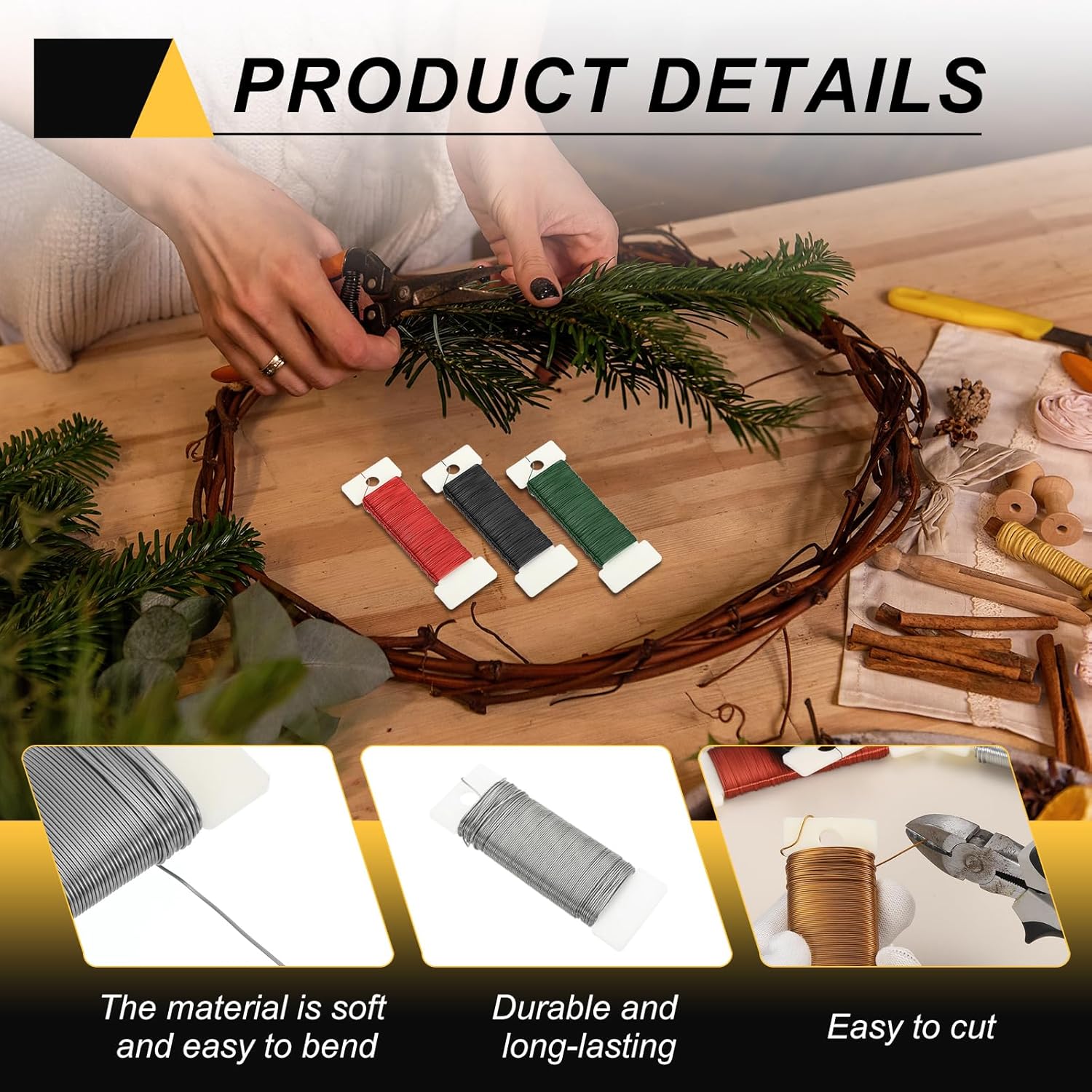 - This floral wire is suitable for various holiday decorations, such as making Christmas wreaths, hanging Christmas ornaments, and tying bouquets to help you secure the position of fresh flowers and prevent them from scattering. It can also be used to create exquisite potted plant art, bows, crafts, and more.