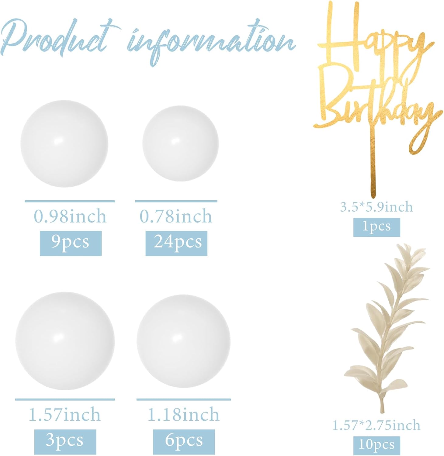 - Package included : 10pcs white grass cake toppers, 1pc happy birthday cake topper,42pcs White red balls