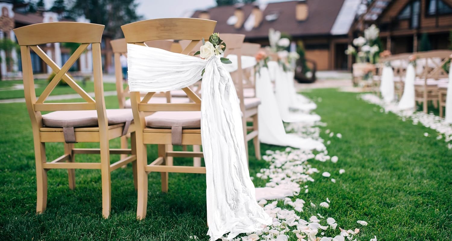 - 【Delicate Craftsmanship】White cheesecloth chair sashes adopt unique pleated workmanship, and the overall appearance is simple and elegant, creating an elegant and romantic atmosphere easily. The edges are carefully stitched to keep a perfect flowing condition, will not get broken or loose easily, can serve you for a long time