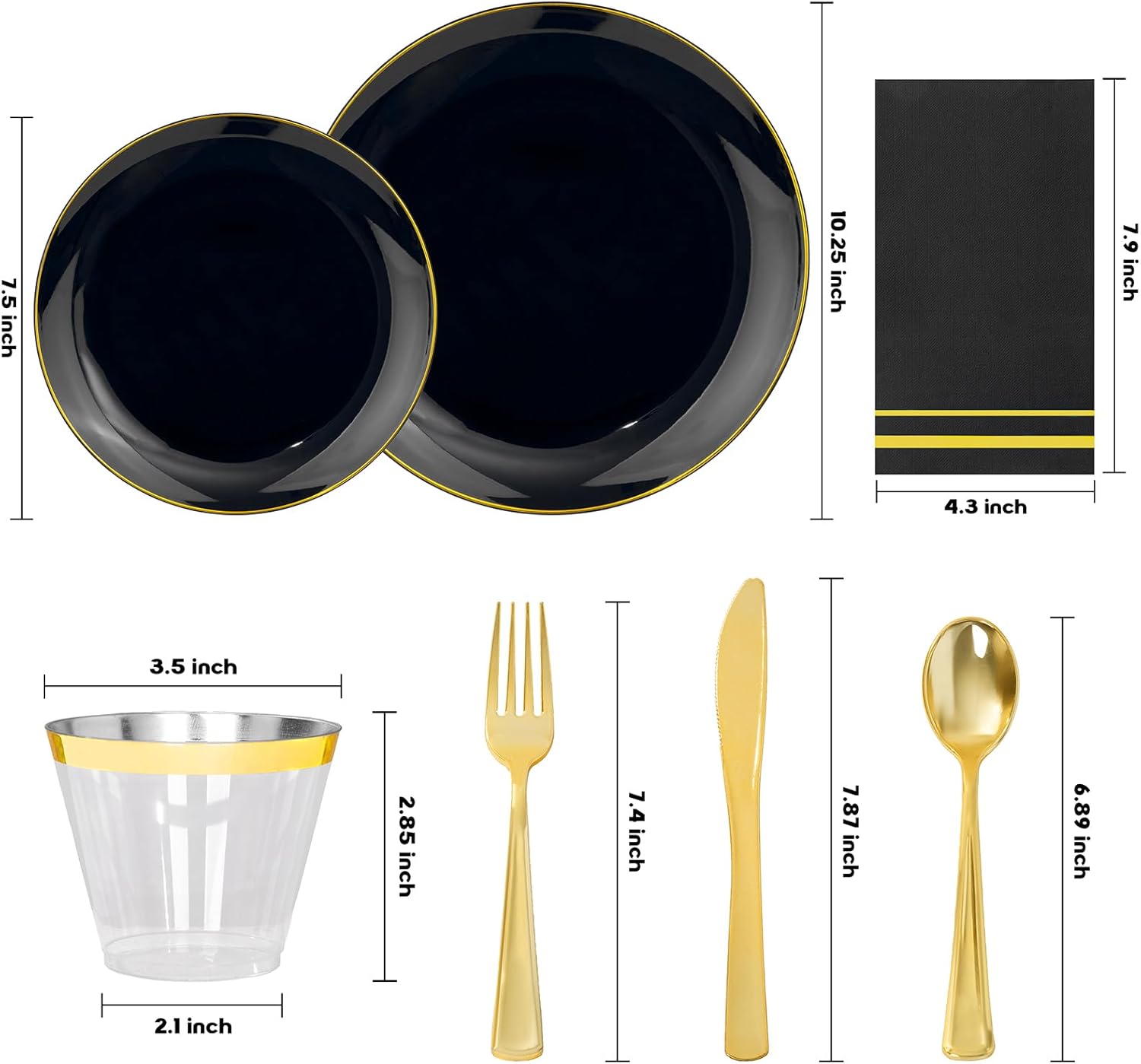 - CAREFULLY MATCHED : Our delicate disposable black gold plates, matched with unique napkins, exquisite cutlery and cups, elevate your dining to an elegant, stylish affair.