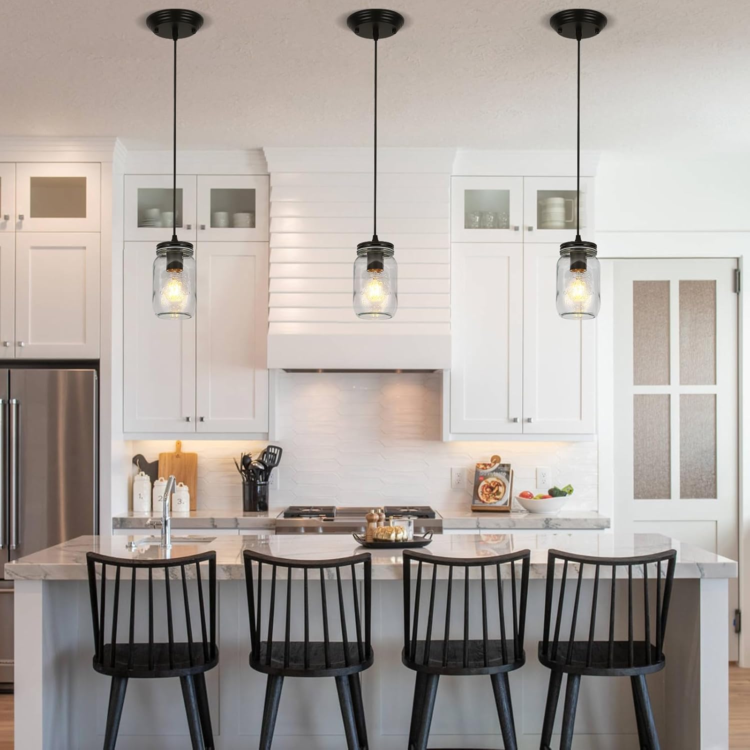 - High Quality Materials: This kitchen pendant lighting over island uses high-quality thickened glass, UL-certified wires and lamp sockets to ensure the durability and reliability of the farmhouse hanging light, providing you with a safe and long-lasting use experience.
