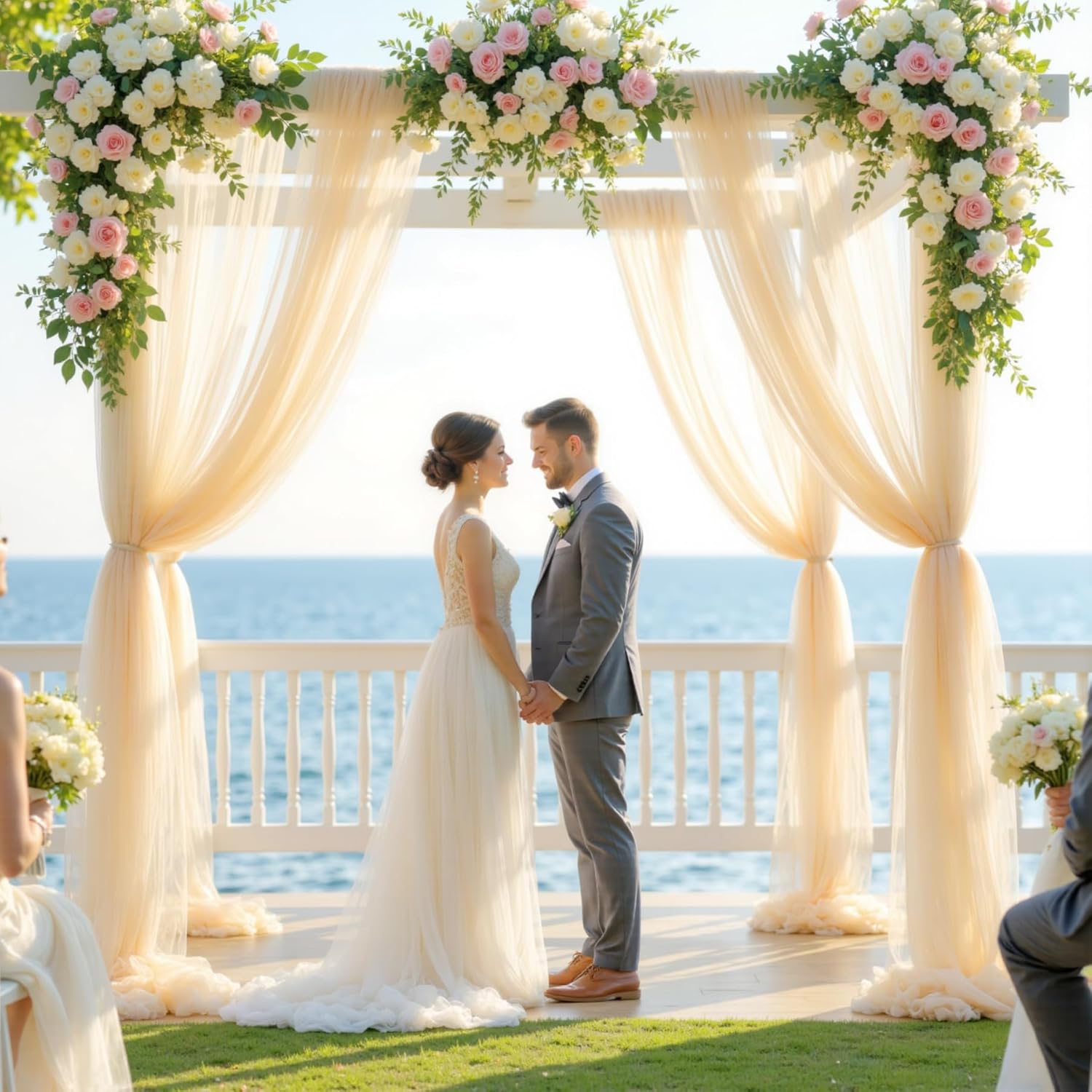 - Wedding Arch Draping Fabric: 100% high-grade polyester tulle, offering unmatched softness and durability. Delicate matte finish with a subtle sheen that catches light elegantly without glare (perfect for photography).Wrinkle-free: Packed on roll with anti-crease lining—unfurls ready-to-use.