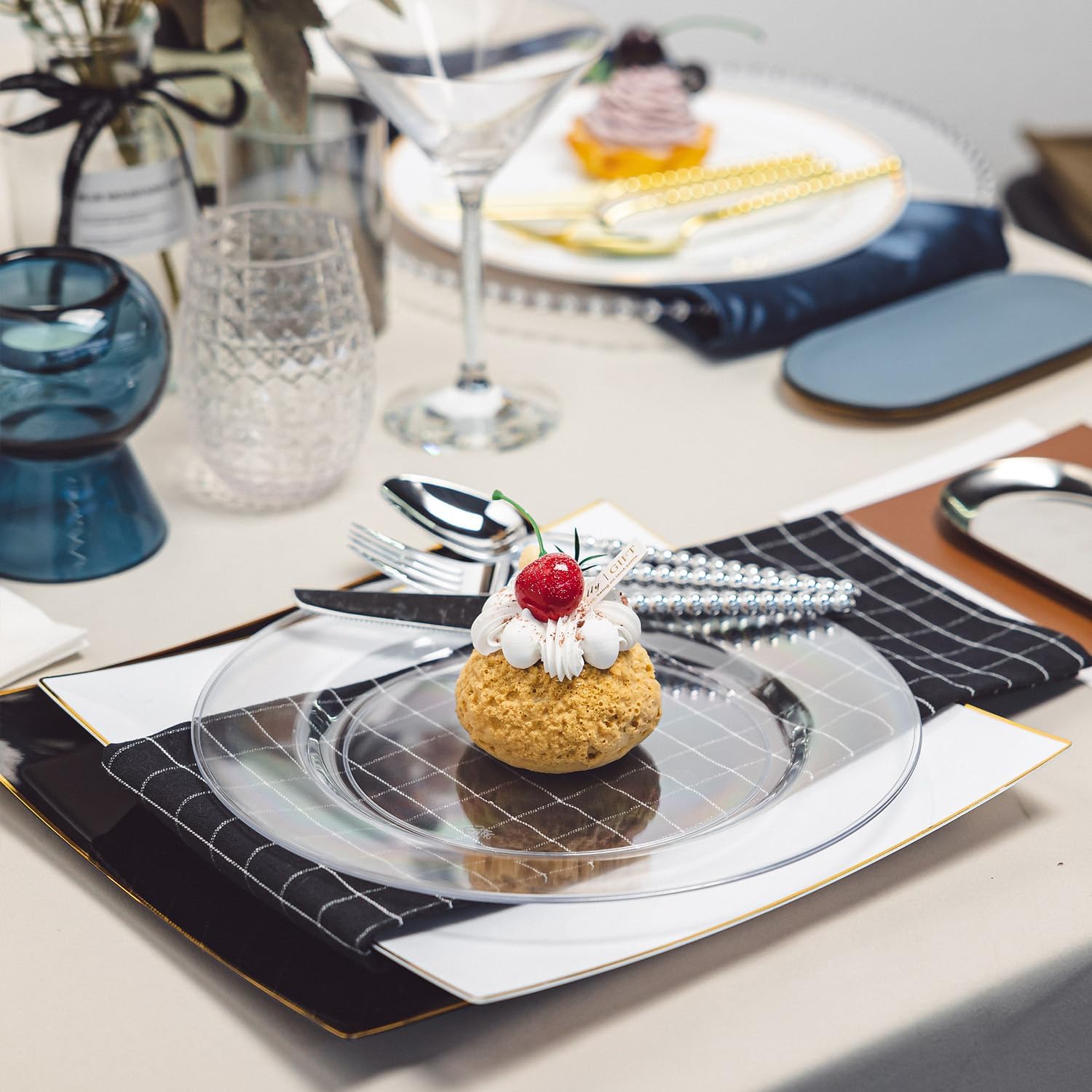 - DISPOSABLE AND REUSABLE: Our clear disposable dinner plates feature a minimalist design—no patterns or prints. Simply rinse with water after use to restore their like-new shine. With minimal care, these durable plates can be dried and reused