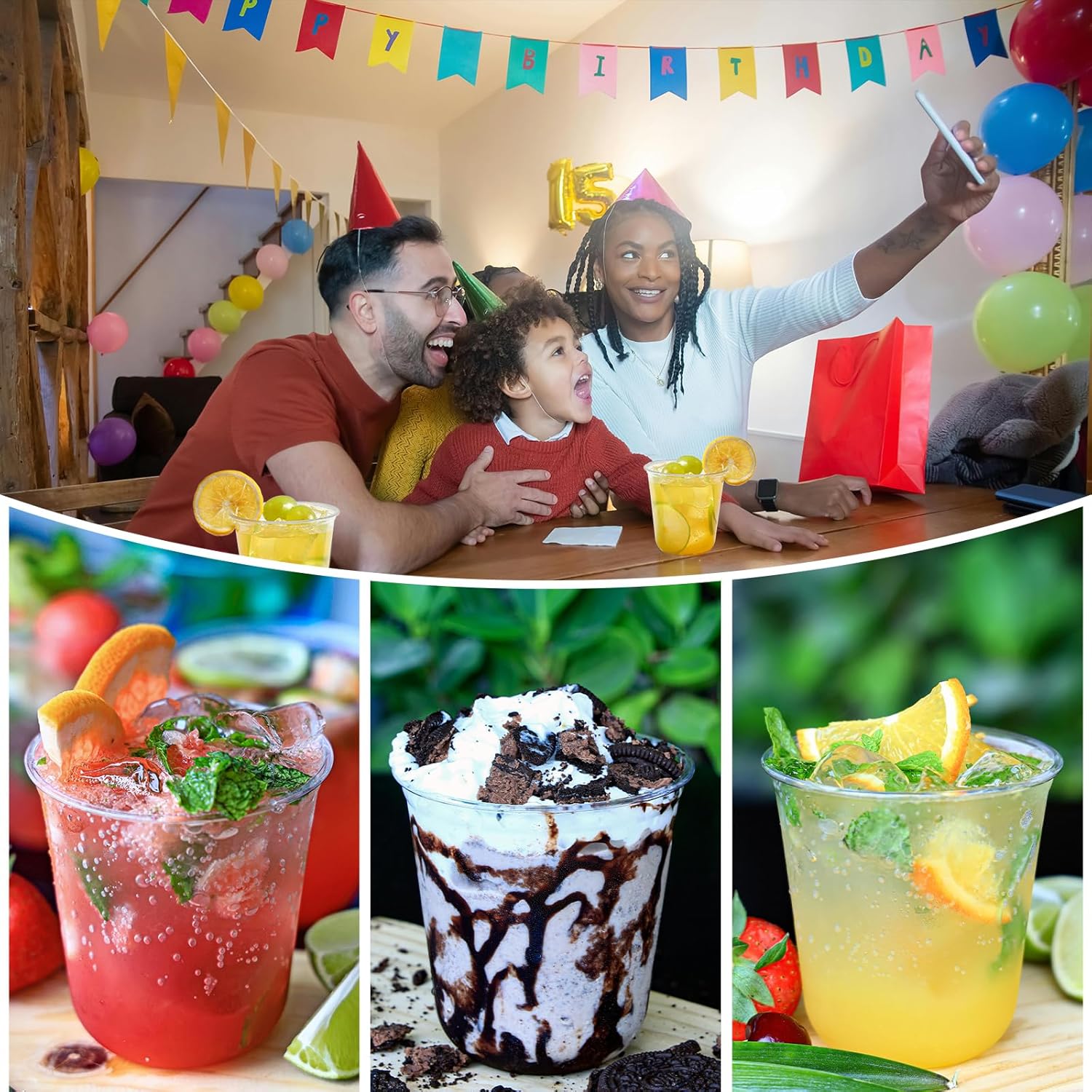 - Package Includes: Come with 100 12 oz clear plastic cups, sufficient quantity for your daily needs and party use. Great for large-scale events, enjoy any homemade beverages and cold drinks anytime