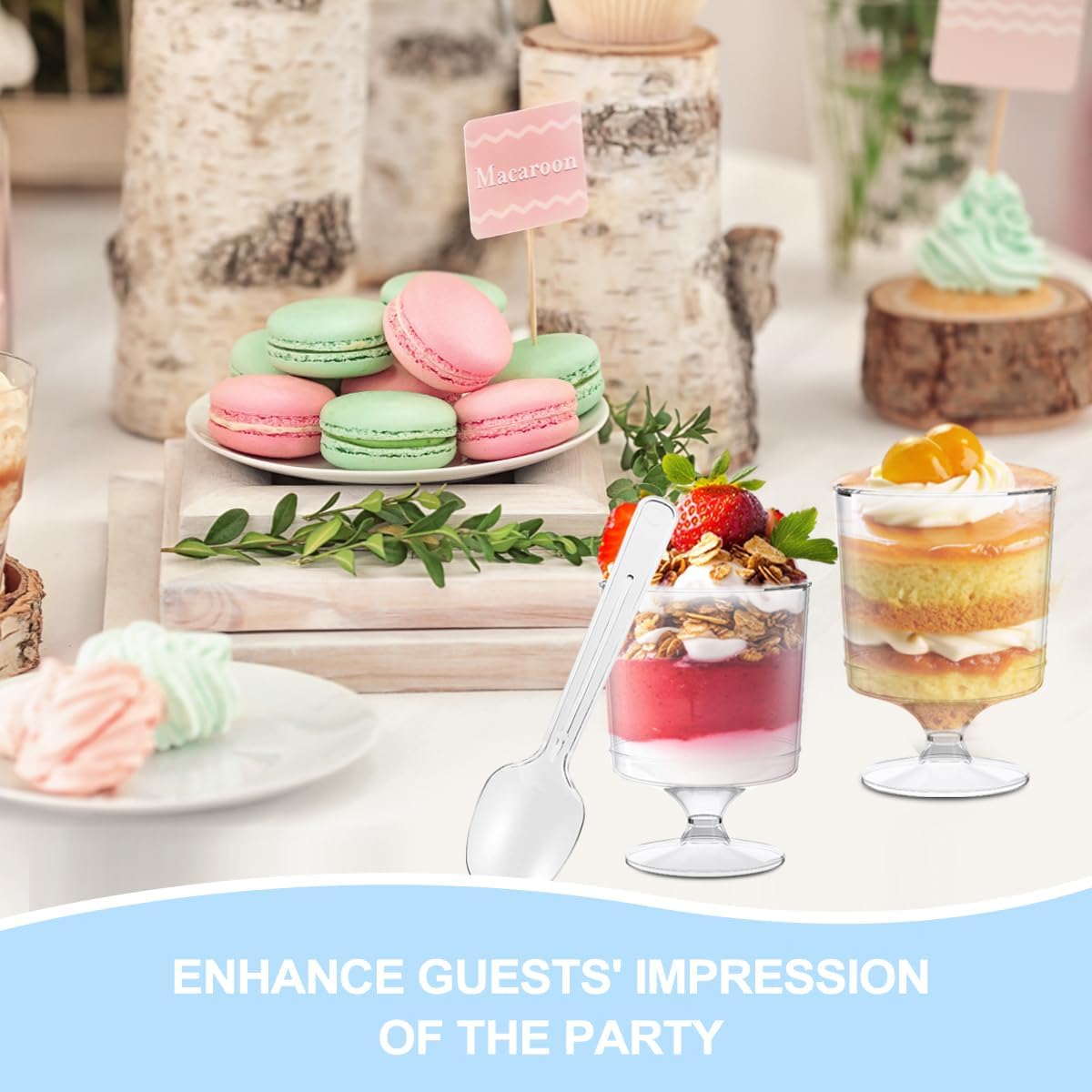 - Wide Use of Application:These dessert cups with spoon are perfect for delicious desserts,puddings,mousses,fruit,ice cream yogurt,can be widely used in wedding,picnic,camping,birthday party,anniversary,baby welcoming party,holiday party,various parties