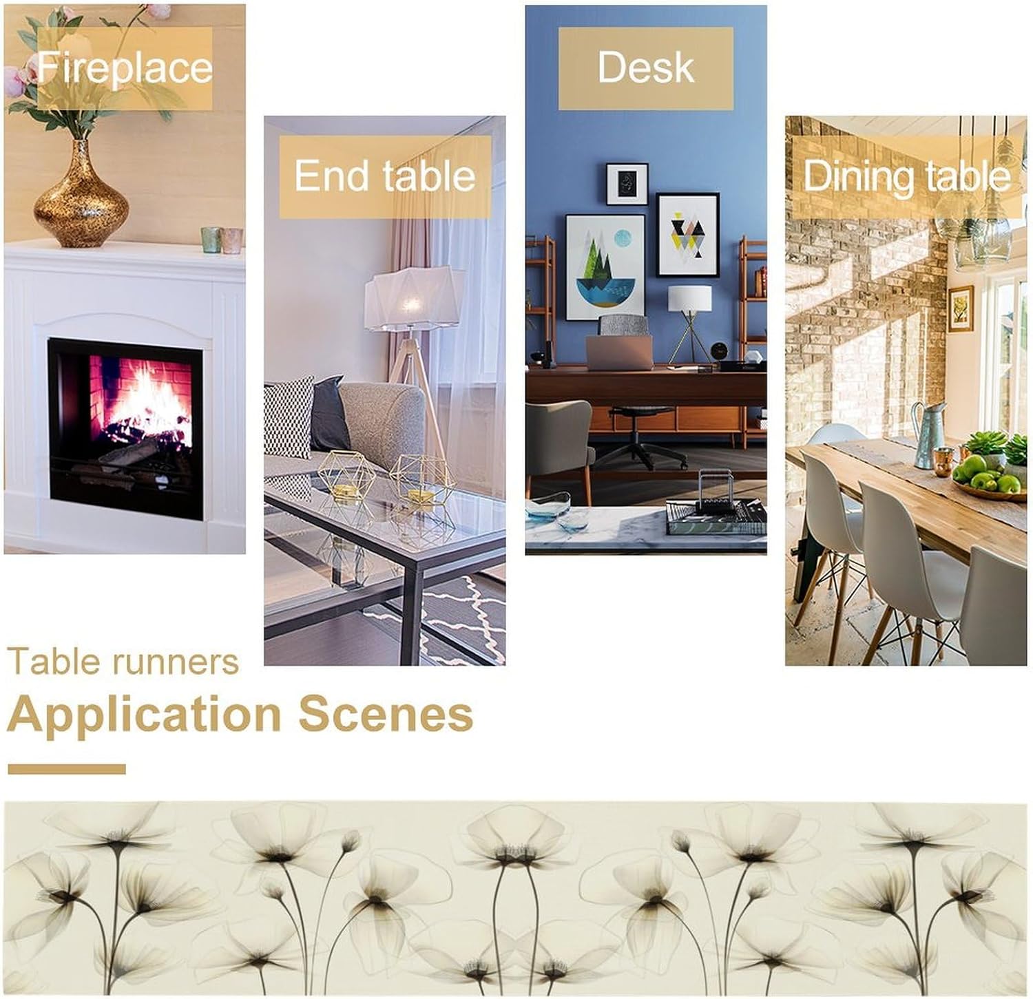 Abstract Floral Table Runner, Watercolor Transparent Beige Poppy Flowers Print Kitchen Dinning Table Runner for Indoor Outdoor Home Wedding Party Holiday, 13x108 Inch