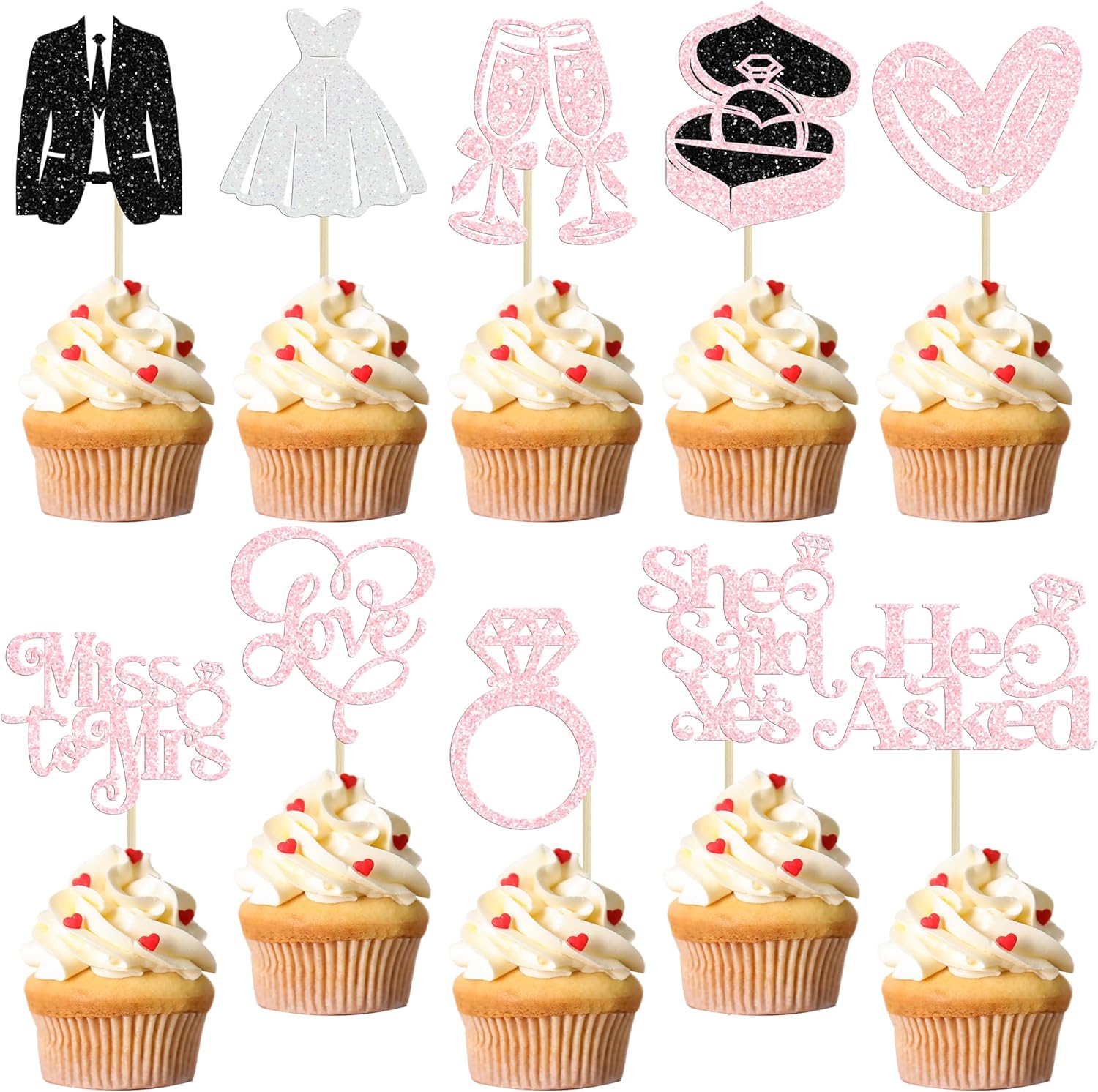 - --Package included: 30Pc She Said Yes Cupcake Toppers Cupcake Toppers. Comes with assembled, so you can insert into your cake directly, which make your cake more interesting.