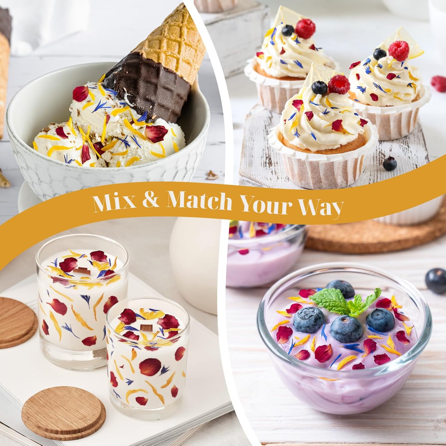 - Perfect for Edible & Craft Use: Ideal for baking, cupcakes, edible flowers cake decorations, cocktails, teas, drinks, salads, and gourmet dishes. Also great for DIY soap making, potpourri, bath bombs and candle making.