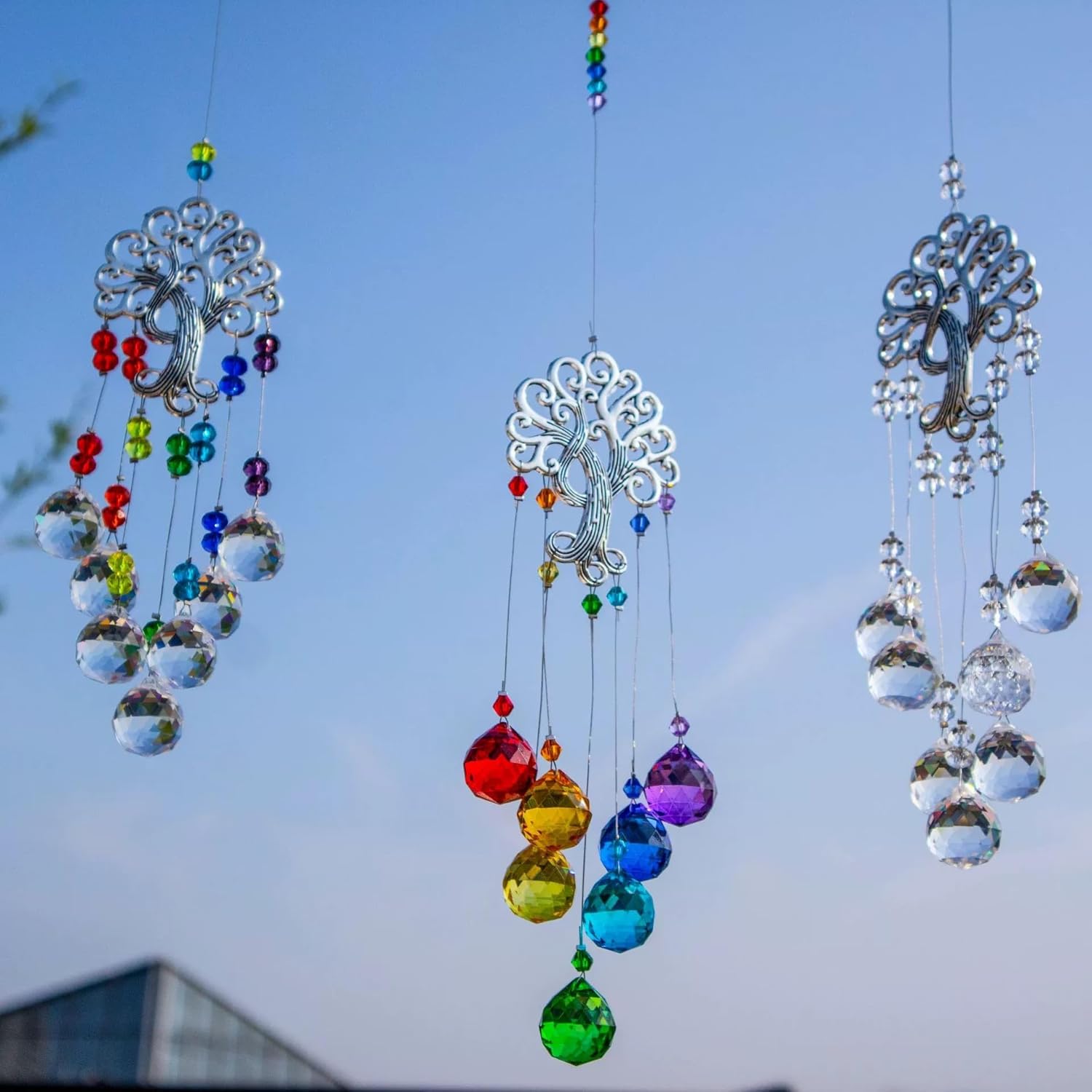 TUOKING 3 Pcs Crystal Suncatchers for Window Hanging Tree of Life Colorful Crystals Prism Ball Pendant Sun Catchers Rainbow Maker Ornament Gift Home Garden Decoration