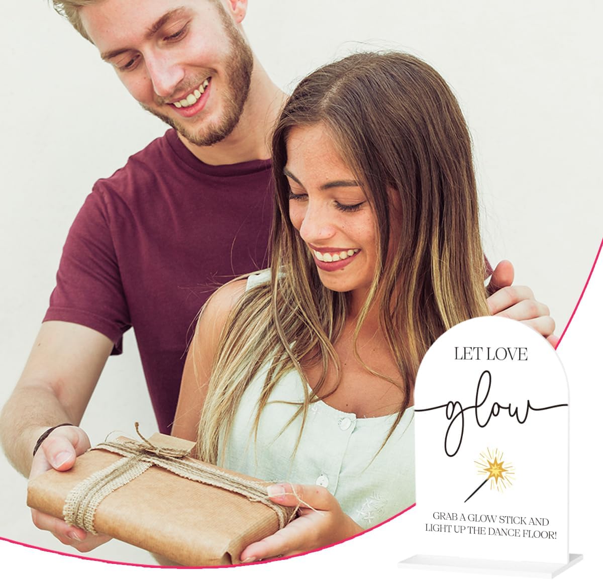 Wedding Glow Sticks Light Up Sticks Sign for Reception Acrylic Arch Dance Floor Props Table Decor Signs for Wedding Bridal Shower 7 x 5 Inches