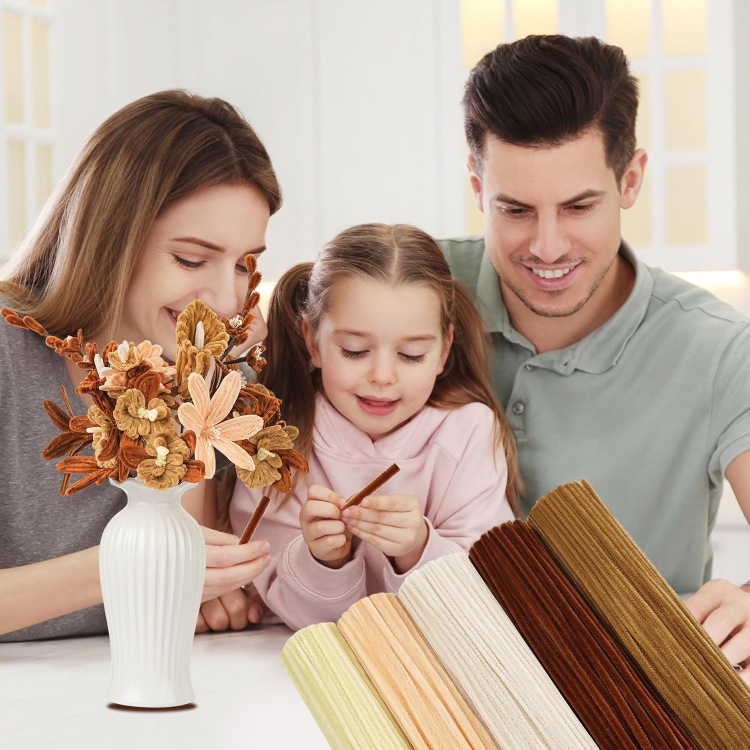 - 【Handmade pipe cleaner flower bouquet】The product includes all crafting accessories: 400pcs pipe cleaners,20pcs floral Wires, 2pcs gardening tapes,1pc greeting card,3pcs bouquet papers, 2pcs Hot Glue Sticks,1 bag stamen ,1pc Ribbon &1pc easy instrution.