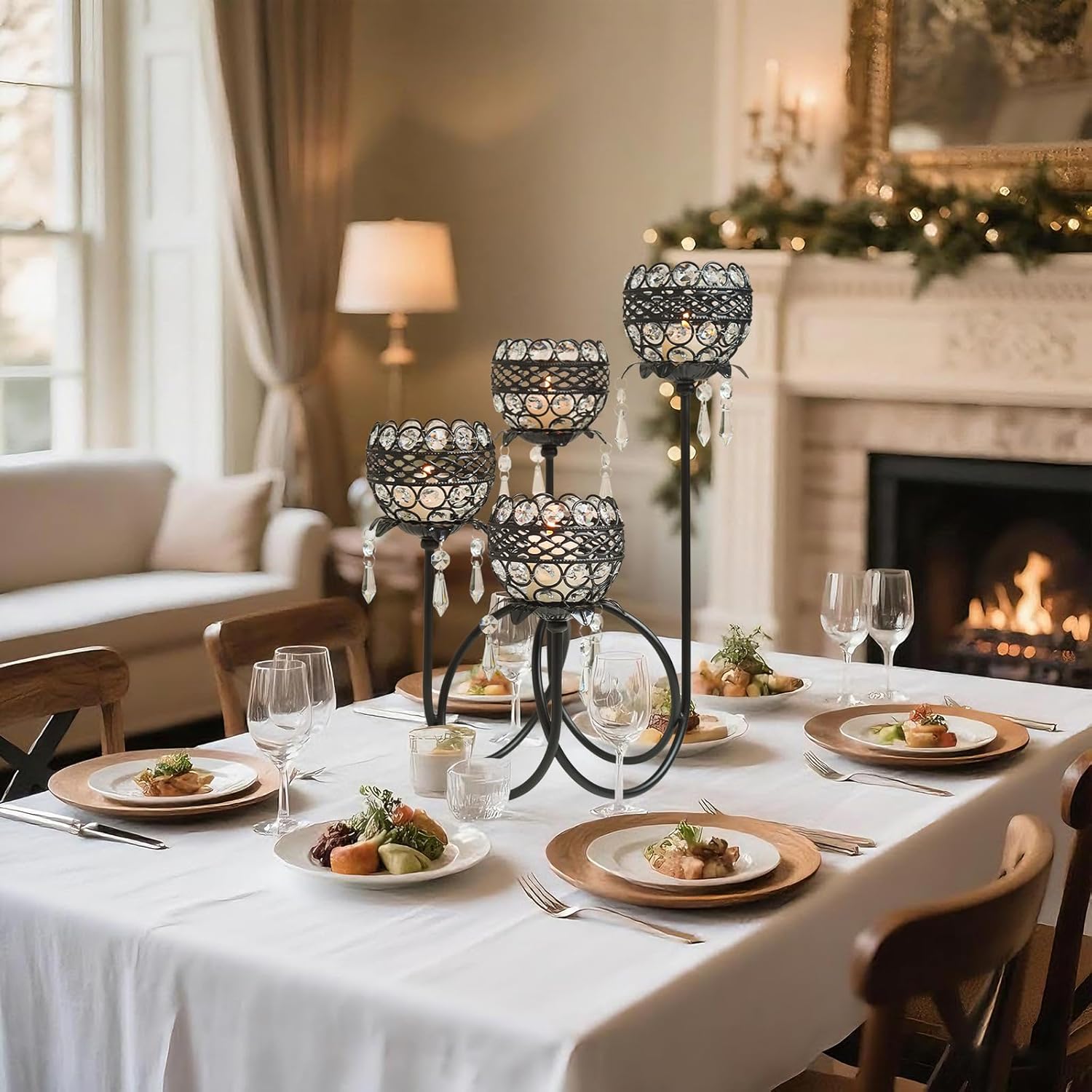 - Dazzling Crystal Bowls & Pendants:Each arm holds a 3.9-inch (10cm) wide crystal bowl with a 1.8-inch (4.5cm) inner tray, designed to securely fit standard tealights while shimmering glass pendants refract light into radiant patterns across your room.