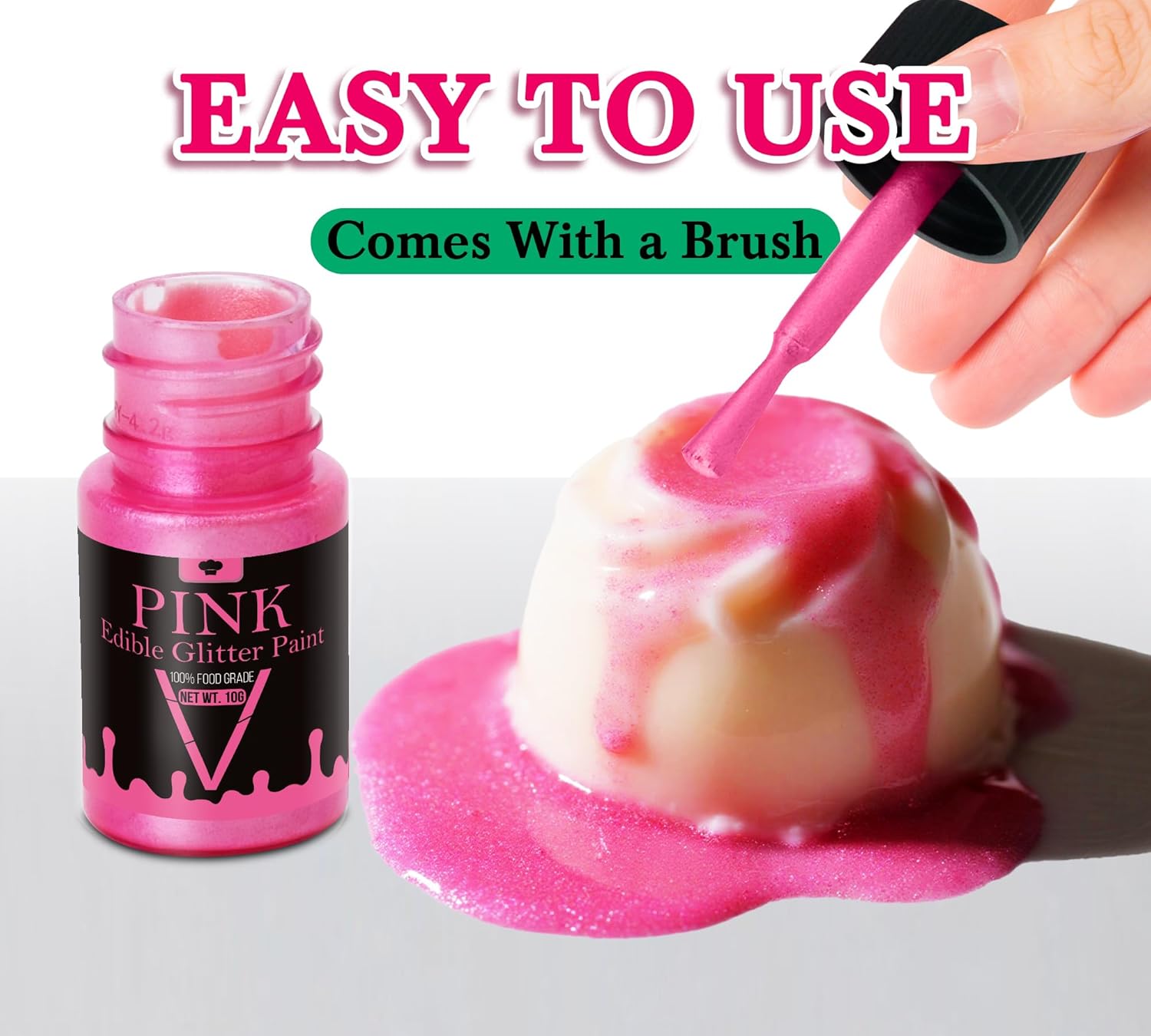 - Food-Safe and Allergen-Free Ingredients: Made from 100% food-grade materials, our edible glitter paint is gluten-free, dairy-free, and vegan. It’s safe for all ages, free from GMOs and allergens, ensuring your decorations remain tasty and healthy.