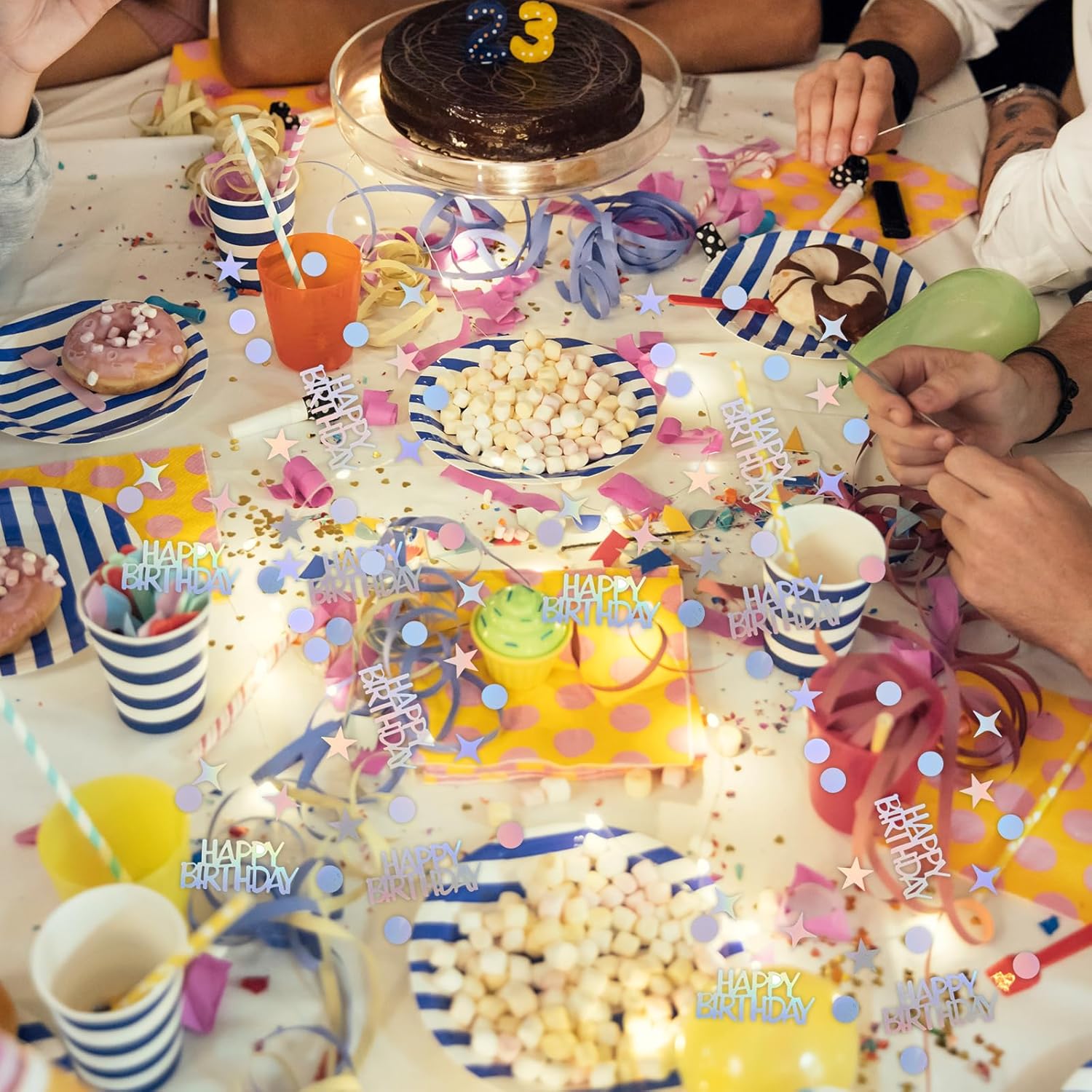 - Note: Not edible. Ensure colorful birthday confetti is kept away from young children. Contact us for any inquiries or assistance