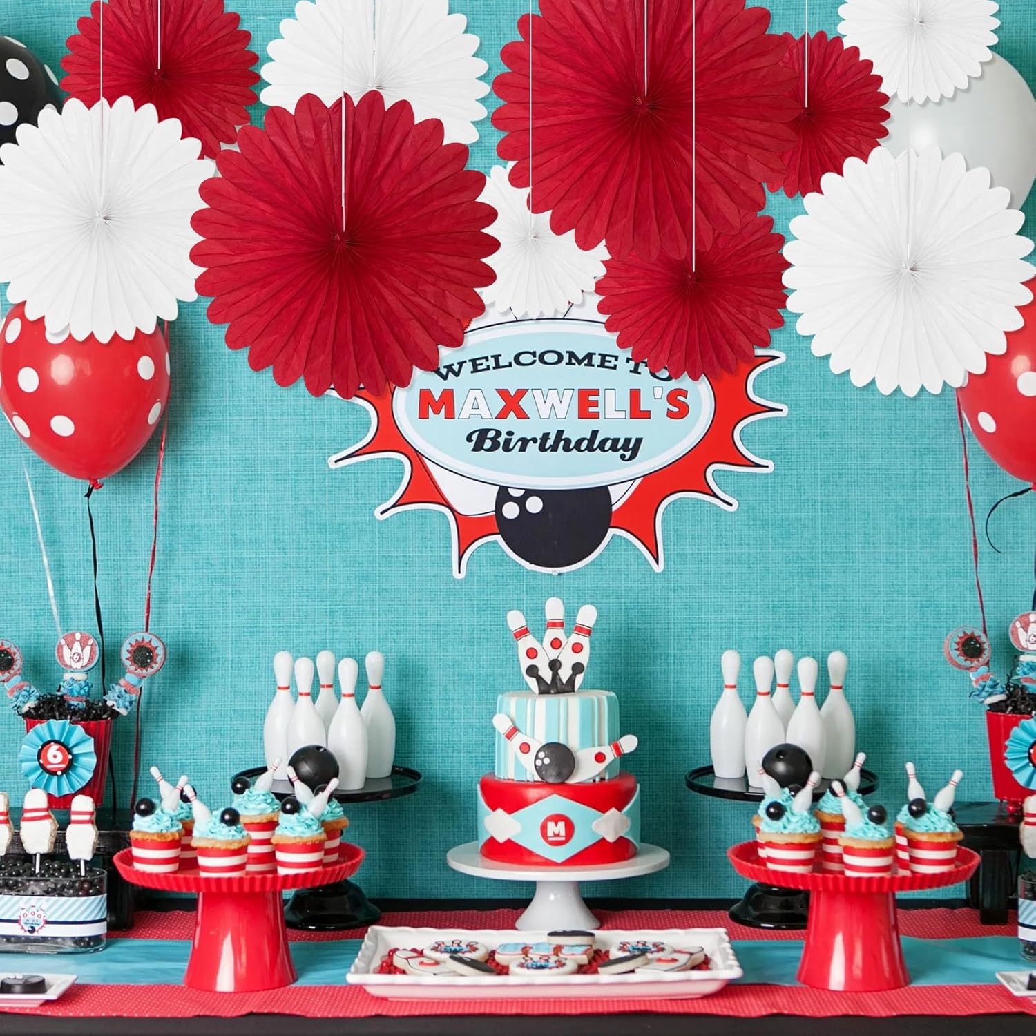 20 Pcs Red White Hanging Paper Fan, Round Paper Fans Decorations Set for Weddings, Birthdays, Engagement, Bridal Shower, Bachelorette Party Supplies Decor