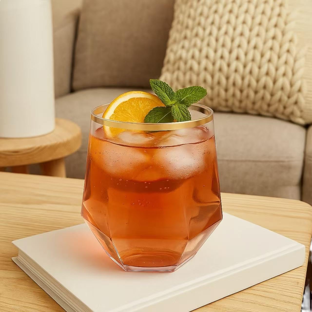 - 40 Diamond-Shaped Disposable Glasses: Stand out with our unique diamond-shaped, clear plastic glasses. Perfect for wine, champagne, whiskey, and cocktails, these elegant 12 oz stemless cups add a stylish touch to any event, ensuring your guests enjoy both beauty and functionality.