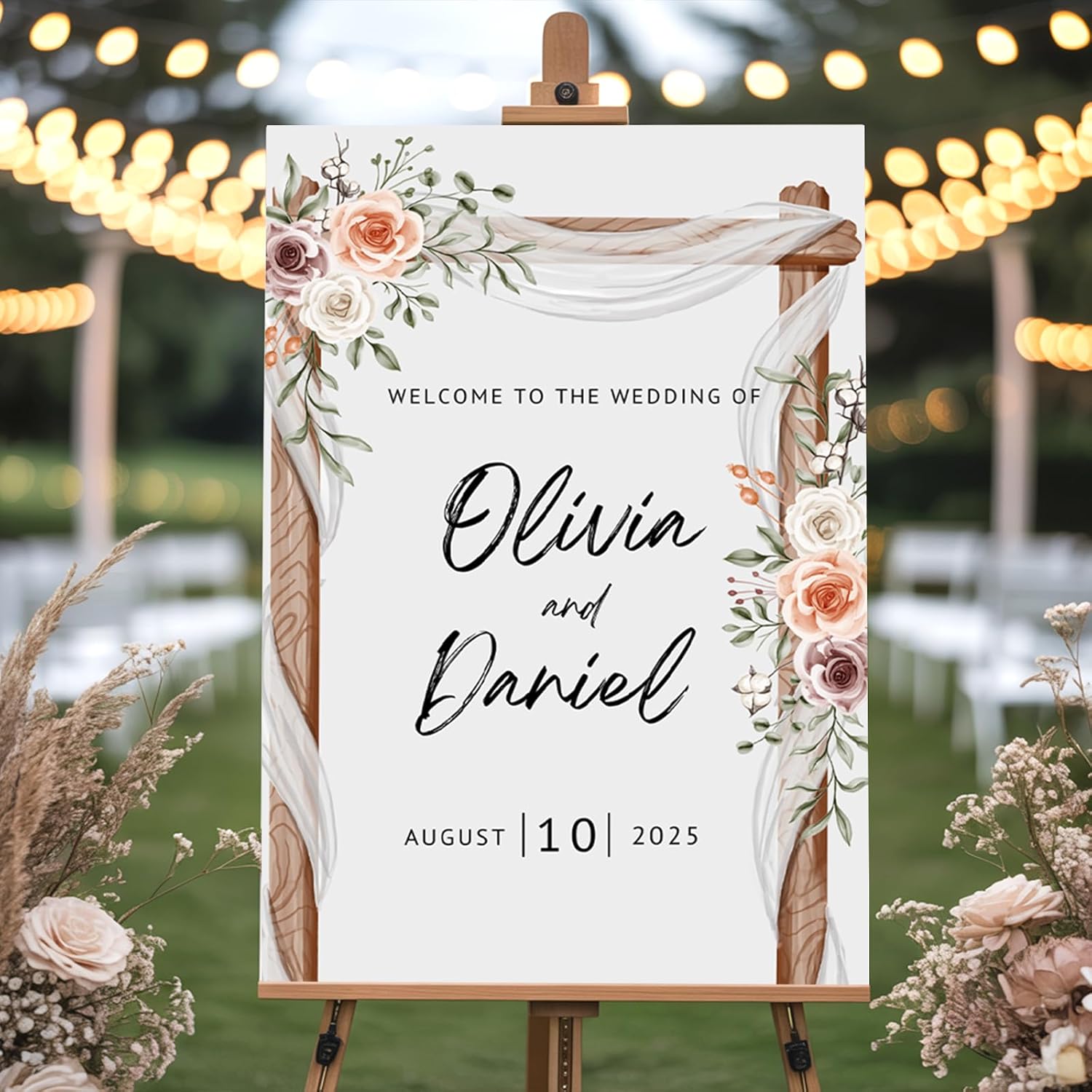- Easy to Display: Designed to fit perfectly on sign holders or easels, making setup simple for both indoor and outdoor events, and ensuring your guests are greeted in style.