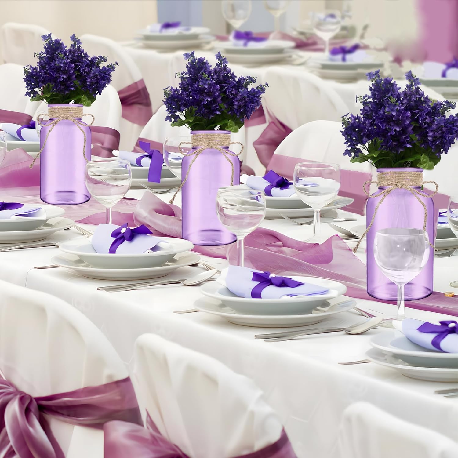Vintage Glass Flower Vase,12 Pack Farmhouse Purple Glass Centerpiece Vases Mason Jars for Weddings, Parties & Home Decor Bulk (12, Purple)