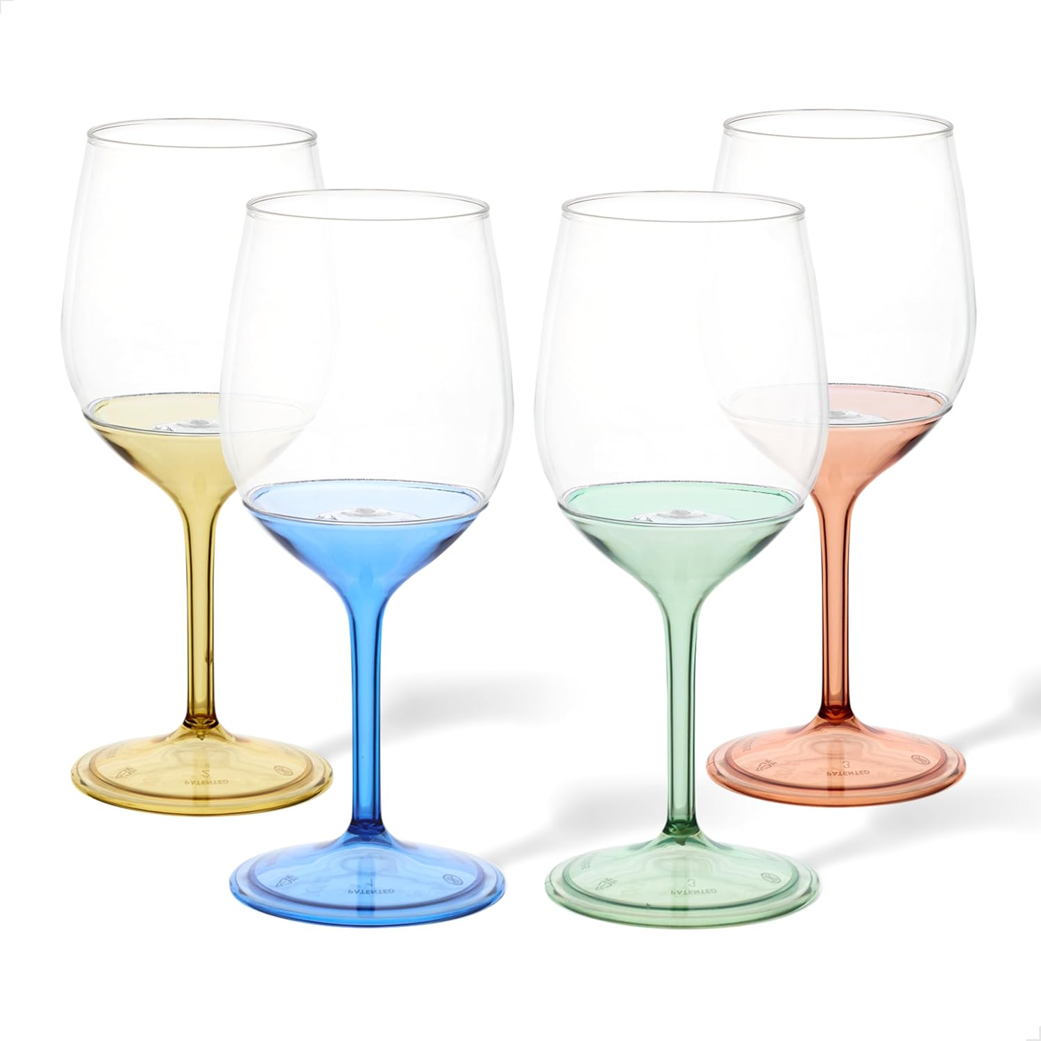 TOSSWARE POP 14oz Vino with Mix Color Stem SET OF 12, Premium Quality, Recyclable, Unbreakable & Crystal Clear Plastic Wine Glasses